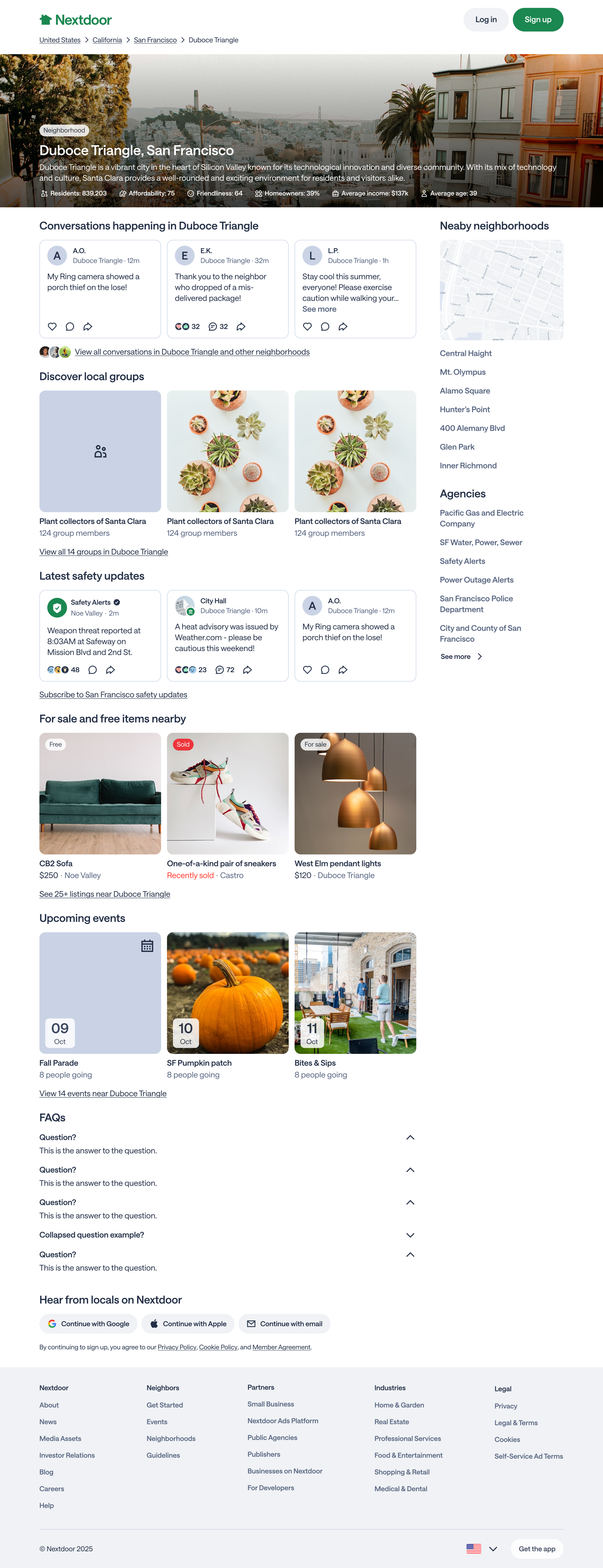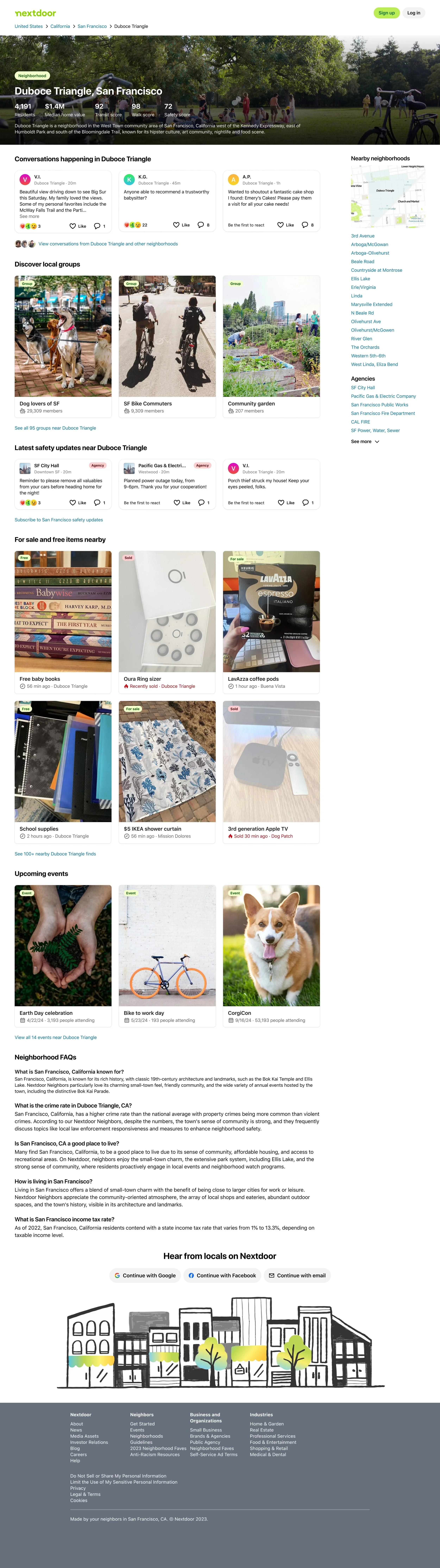 Before this project, Nextdoor’s logged out neighborhood pages were sparse, repetitive, and performed poorly, leading to high bounce rate and low rank on search engines.